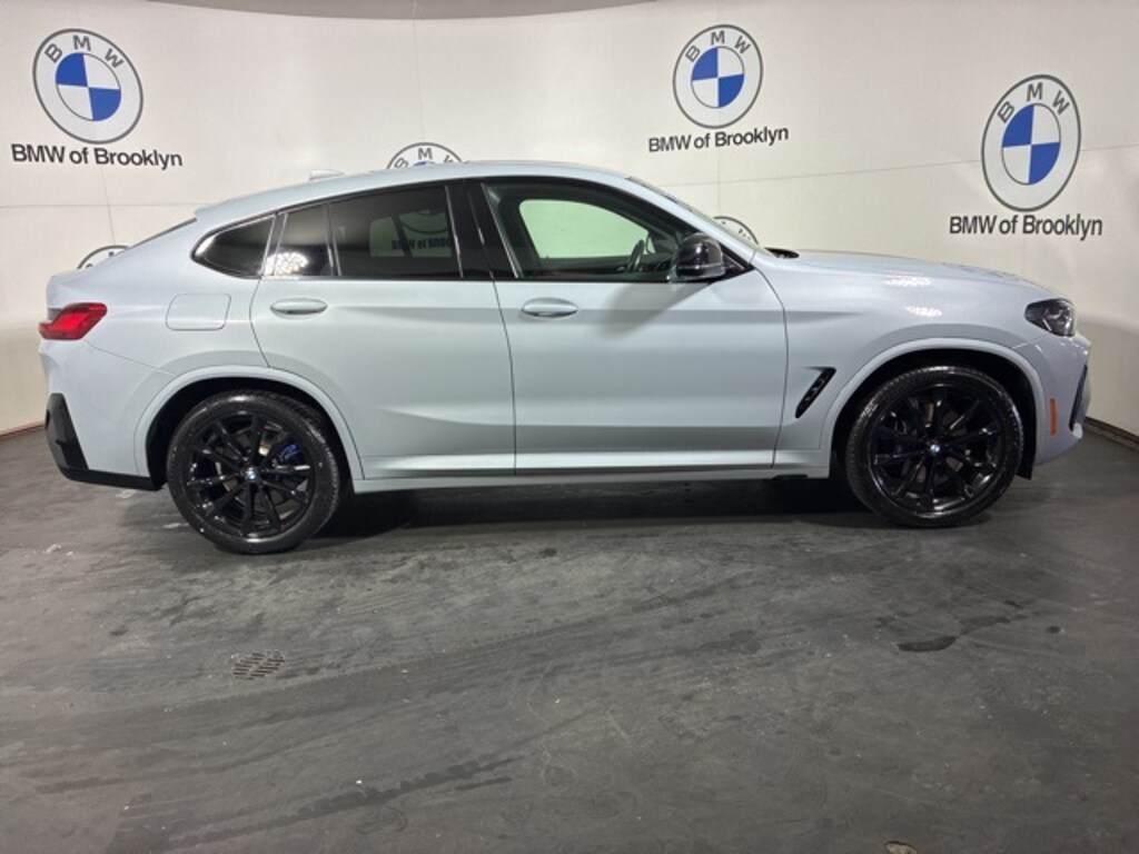 This 2023 BMW X4 Brooklyn Gray Metallic Tacora Red w/Perforated SensaTec Upholstery is well equipped and includes, BMW Certified Pre-owned, Premium Package, Harman Kardon Sound System, Navigation, Panoramic Roof, Remote Engine Start, Bluetooth, Lane Departure Warning, Active Blind Spot Detection, Apple Carplay / Android Auto, SirusXM Satellite Radio, Connected Package Pro, Extended Shadowline Trim, Head-Up Display, Heated Front Seats, Heated Steering Wheel, M Shadowline Lights, Navigation System, Premium Package, Shadowline Package.