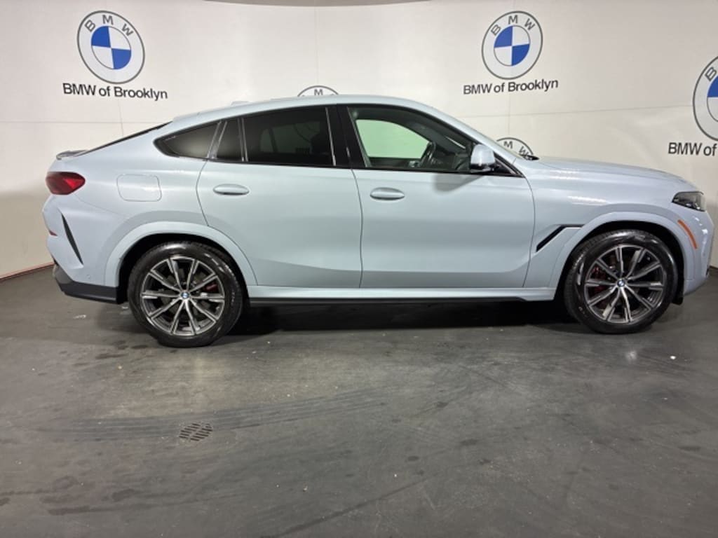 This 2024 BMW X6 Brooklyn Gray Metallic Tacora Red Tacora Red Sensafin is well equipped and includes, BMW Certified Pre-owned, M Sport Package, Premium Package, Navigation, Bluetooth, Park Distance Control, Lane Departure Warning, Active Blind Spot Detection, Moonroof, Connected Package Pro, Extended Shadowline Trim, Gesture Control, harman/kardon Surround Sound System, Illuminated Kidney Grille, Live Cockpit Pro, M Shadowline Lights, M Sport Brakes w/Red Calipers, M Sport Exhaust System, M Sport Package Pro, M Sport Professional Package, Premium Package, Remote Engine Start.